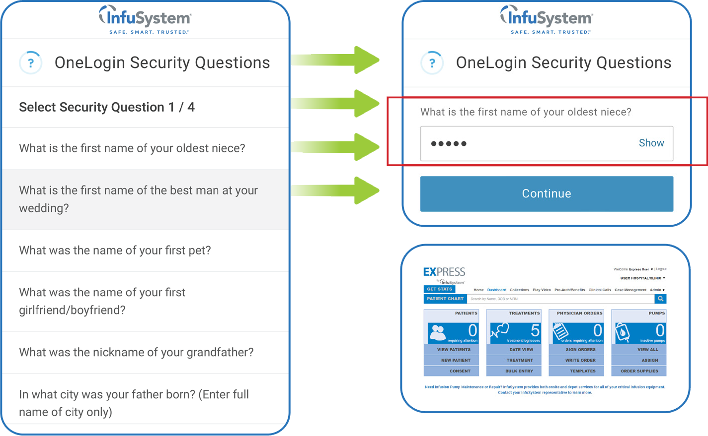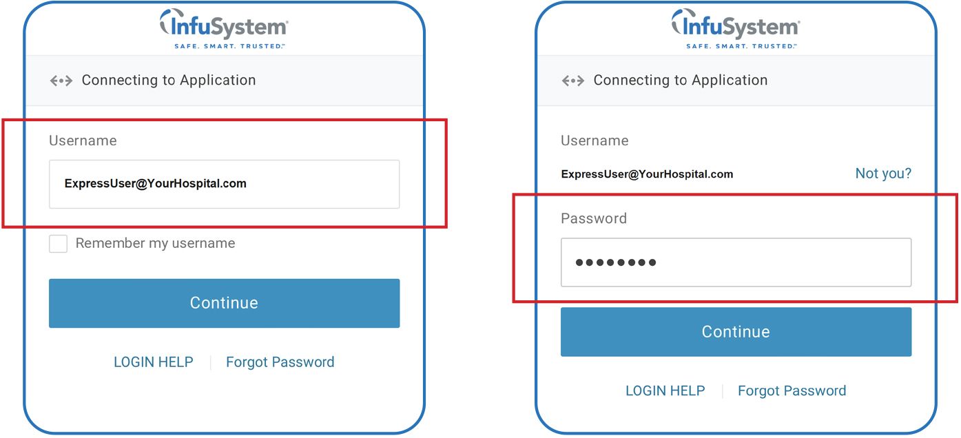 Log in to your OneLogin EXPRESS account on your smartphone, iPad or other device by navigating to infusystem.onelogin.com or express.infusystem.com.