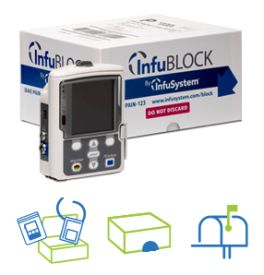 InfuBLOCK is a postoperative, non-narcotic pain relief system that delivers local anesthetic to or near the surgical site. This is a pain minimizing therapy that delivers an anesthetic (numbing) medicine to a nerve. Your InfuBLOCK pain pump will continuously deliver a local anesthetic medication to block the pain in the area of your procedure.